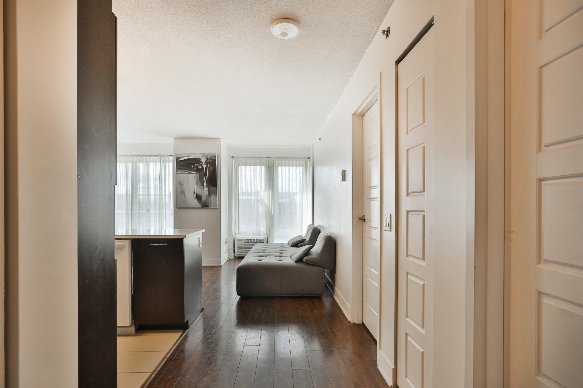 Modern 1-bedroom condo located on the 7th floor of a sought-after building in Laval-des-Rapides. Bright and functional, it offers an open living space and a stylish bathroom. Enjoy amenities like an indoor pool, a fitness room, and security. Ideally located just steps from the Montmorency metro station, Centre Laval, services, schools, and parks. A perfect balance of comfort, accessibility, and quality of life. Ideal for professionals, couples, or investors. A must-see!